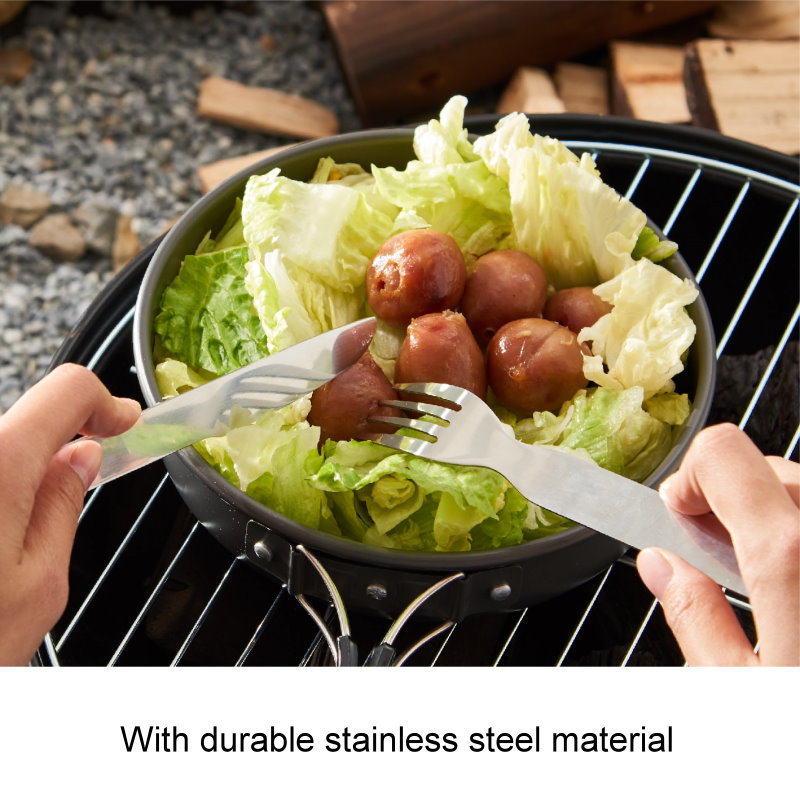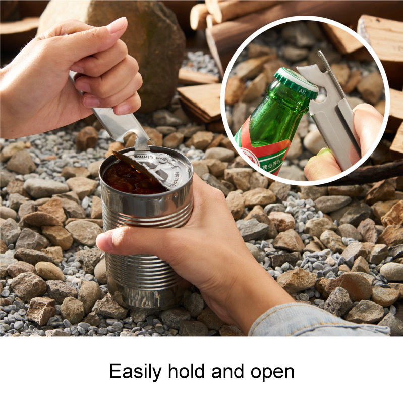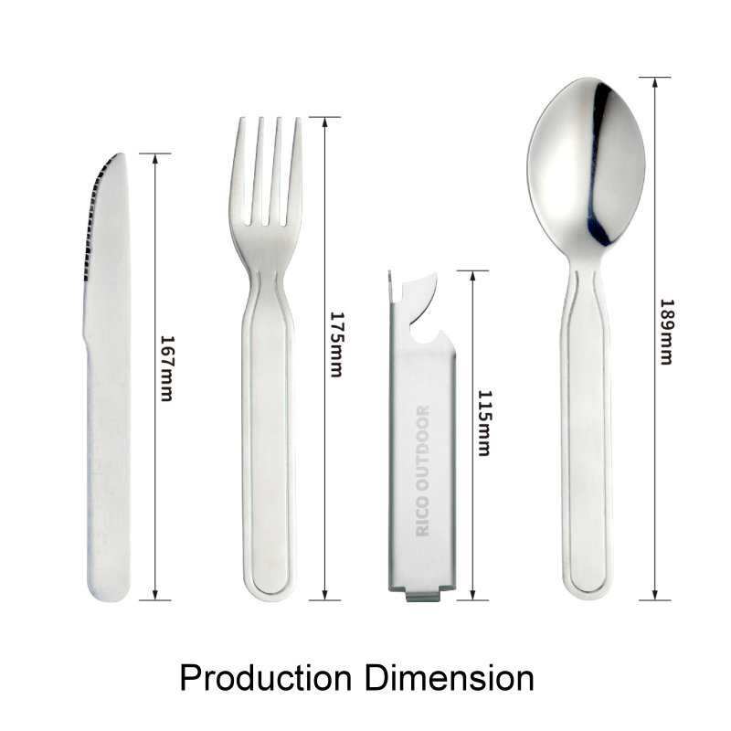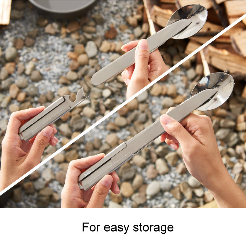 Spoon, fork, knife and opener 4 in 1 with a pouch, which is convenient to carry for outdoor activity.