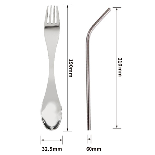 Dual Stainless Steel Metalware Straw Set offer tableware and straw for users. to use anywhere. Spoon & Fork in 1 is truly convenient to use. A straw with a brush allow the uaers to wash after using. And with a pouch is easy to carry and put in a bag.