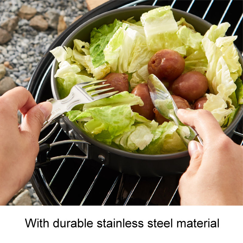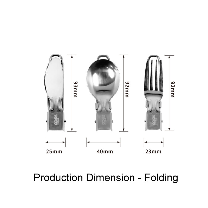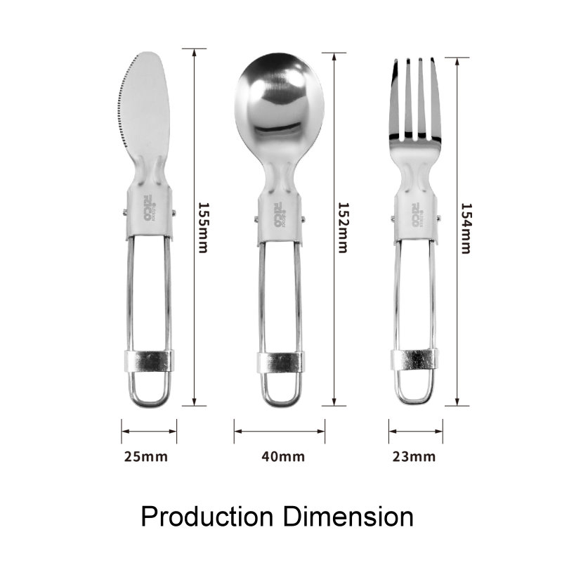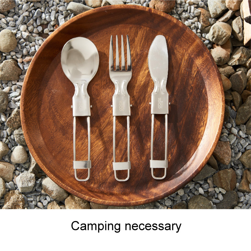 Folding spoon, fork and knife in a pouch, which is convenient to carry for outdoor activity.